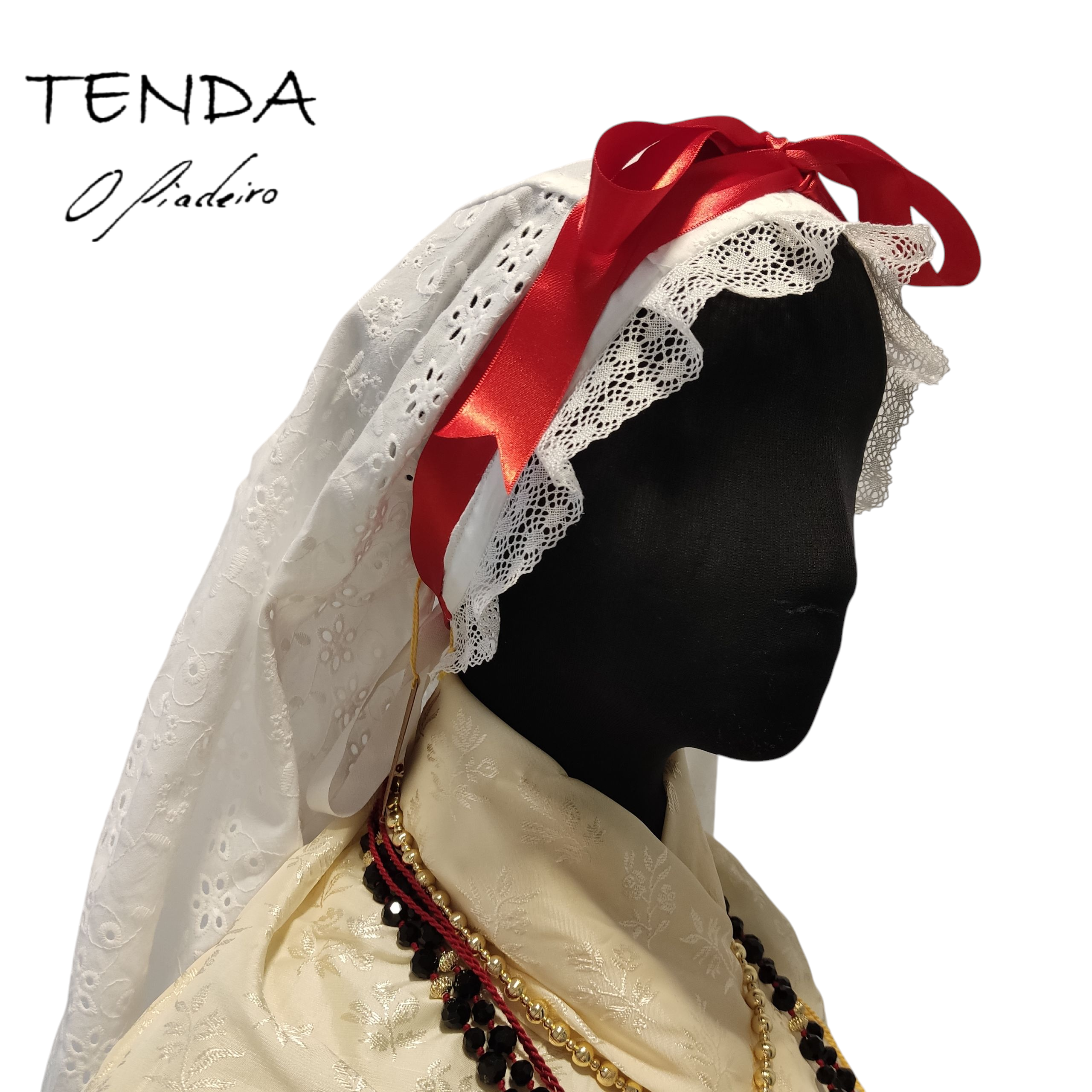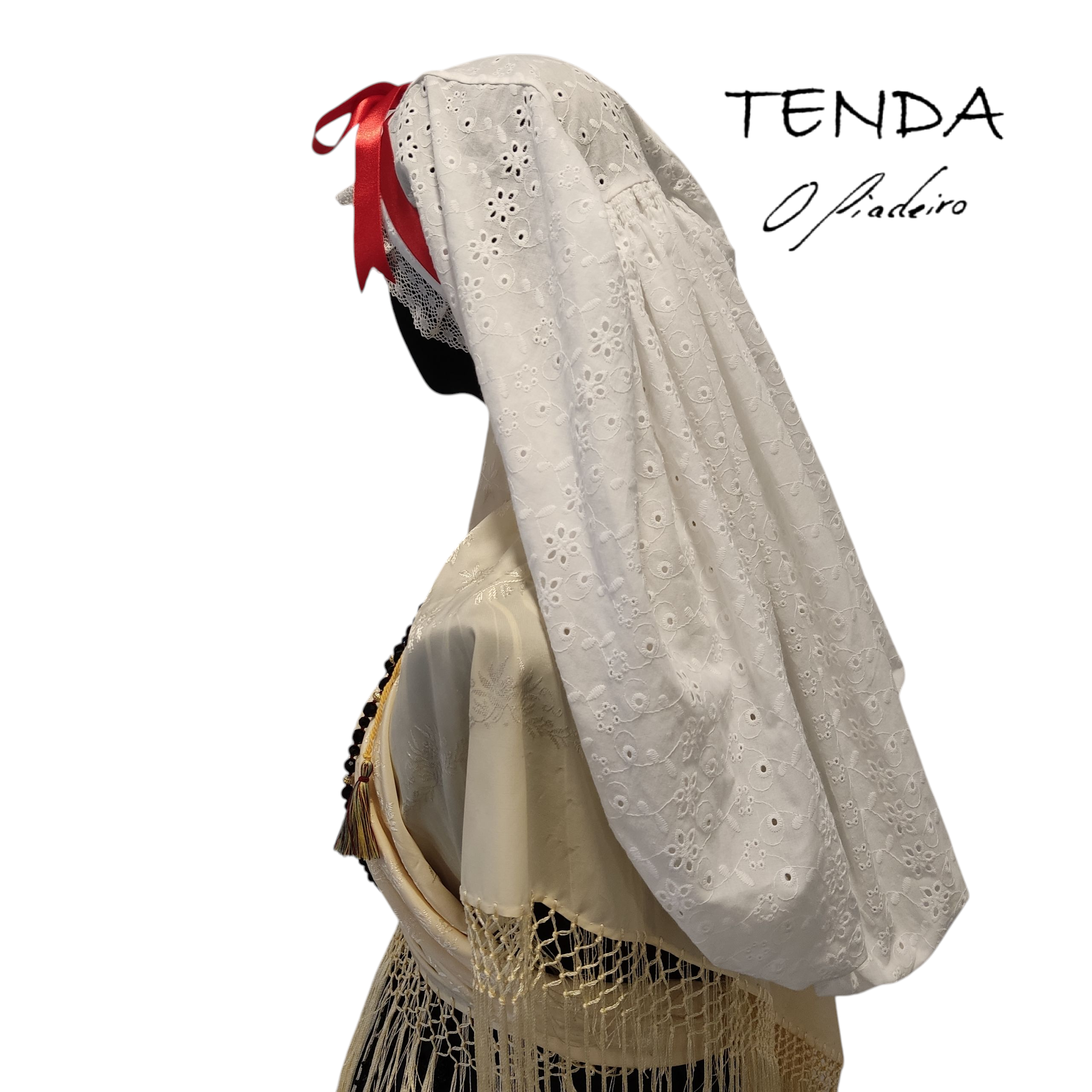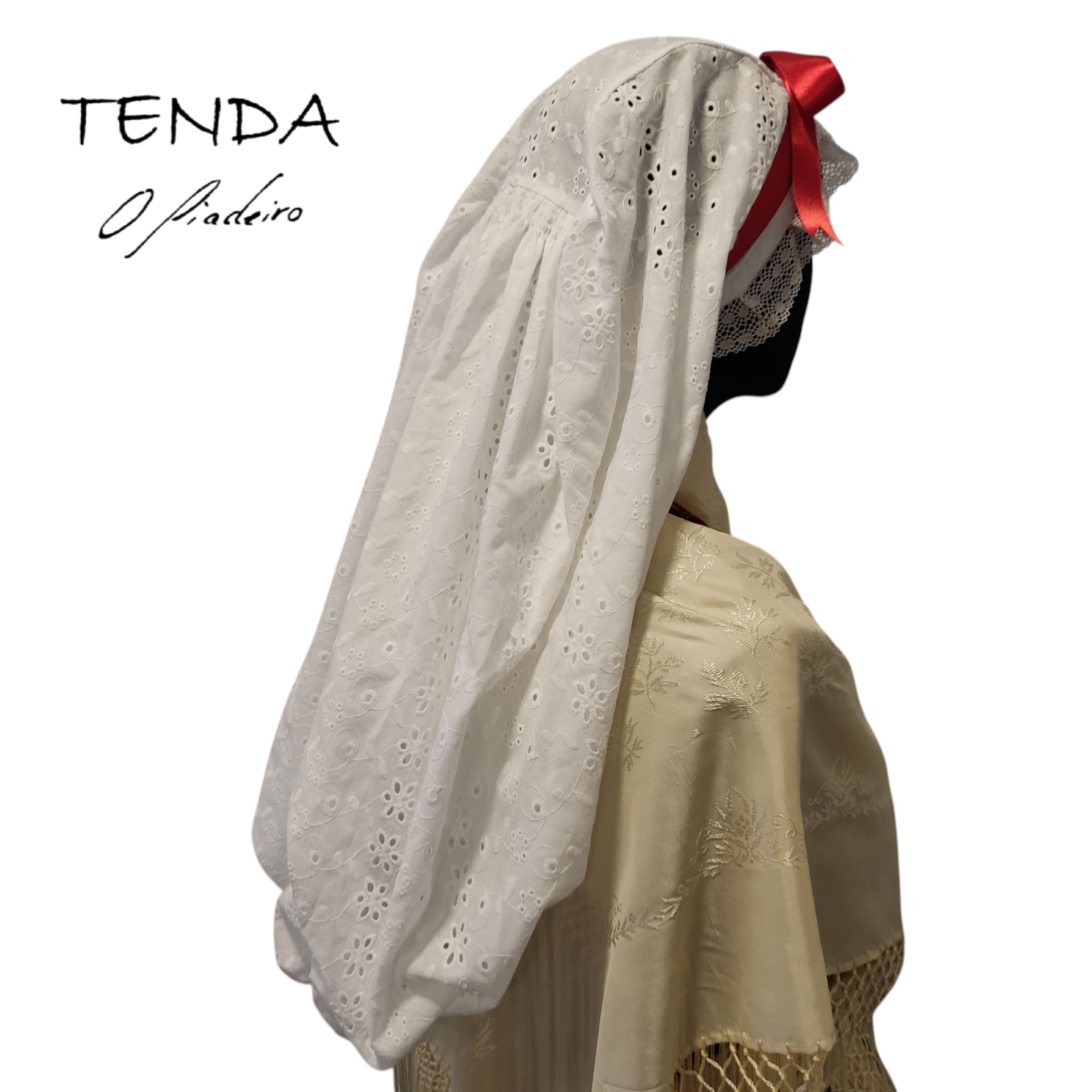 Cofia confeccionada en batista bordada (algodón 100%) segundo os patróns das pezas antigas