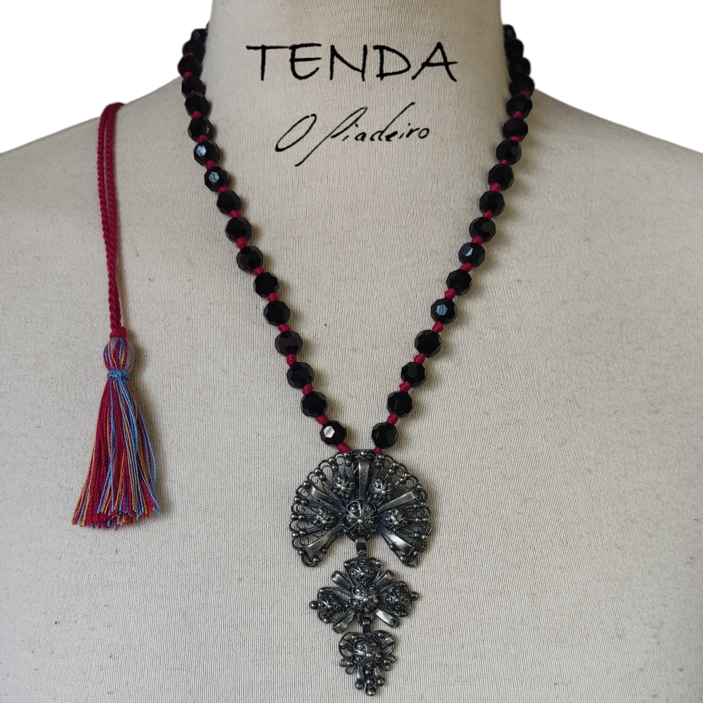 Sapo lazo de bixutería cor prata oxidada (colar anudado)